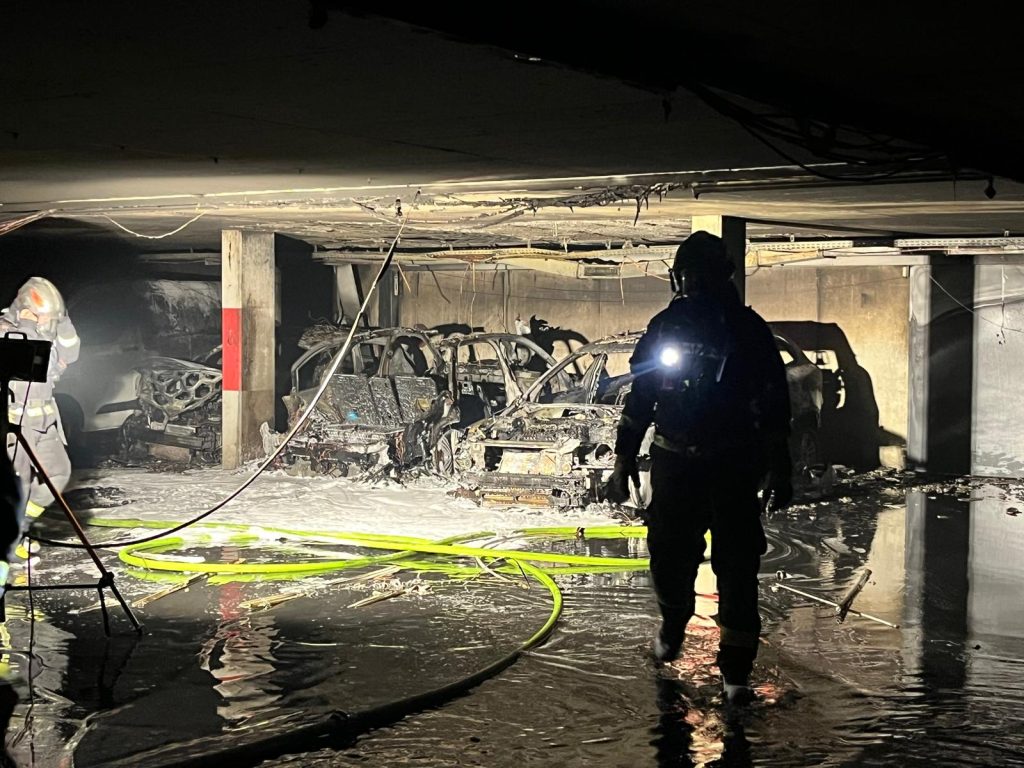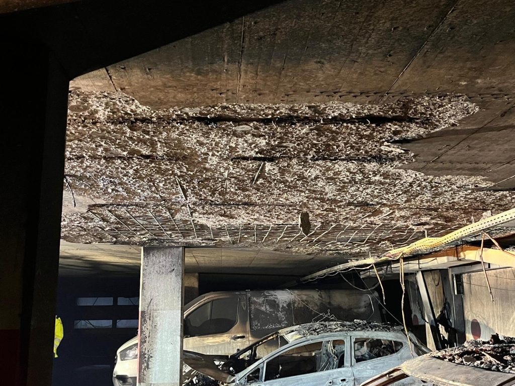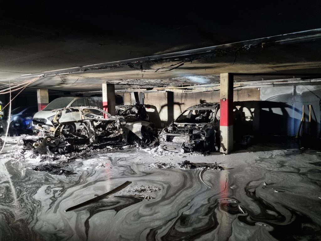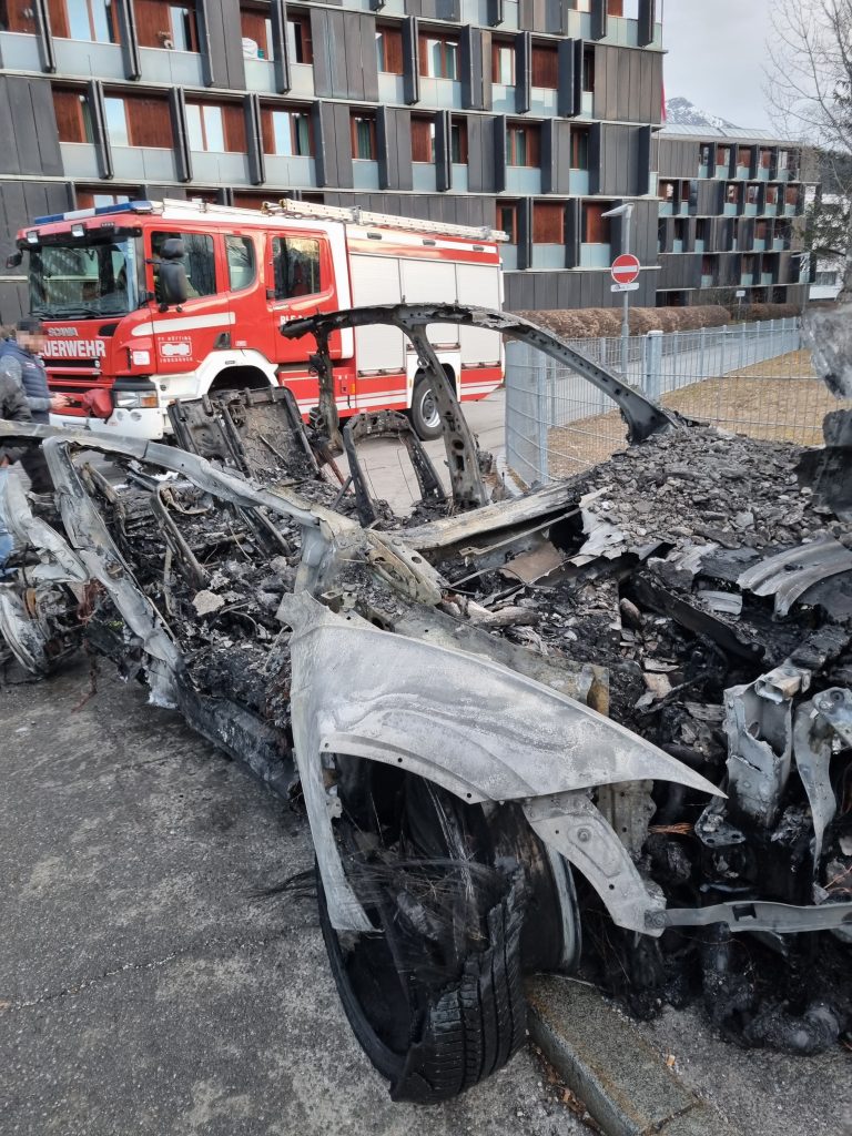 Mittels HUB der FF Mühlau wurden die ausgebrannten Wracks aus der Tiefgarage verbracht – zum Abschluss wurden noch Deckensicherungsmaßnahmen gesetzt.