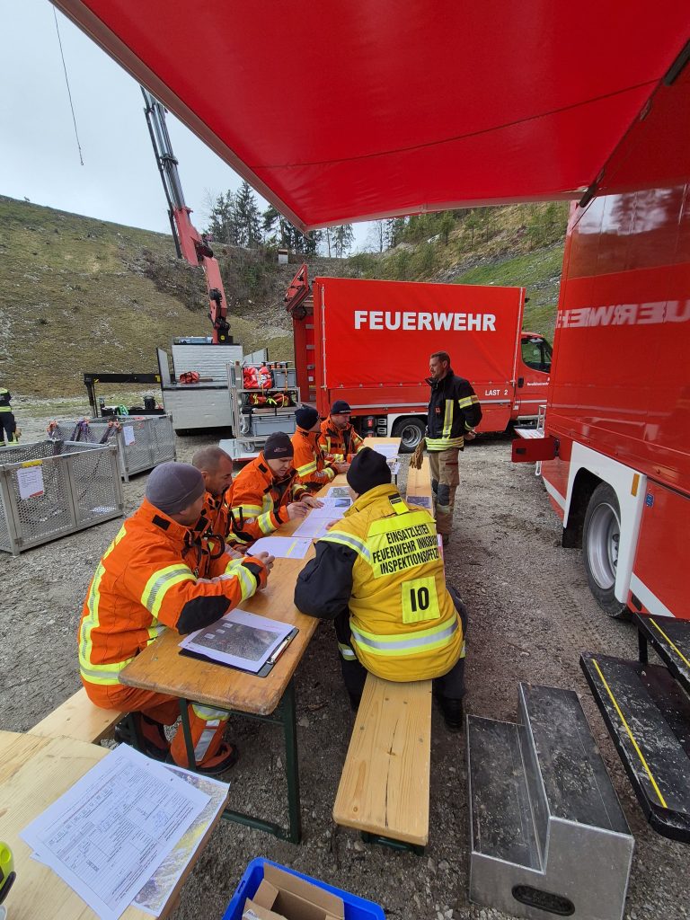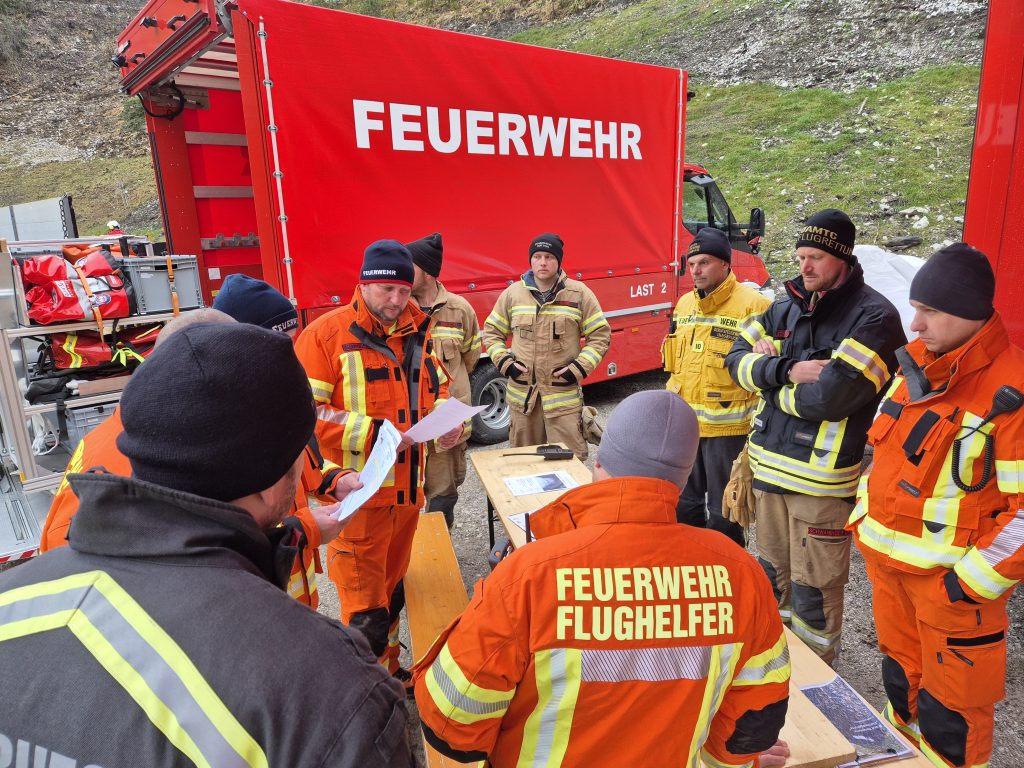 Ausgearbeitet wurden die Stationen durch die beiden Sachgebietsleiter Flugdienst der Bezirke Innsbruck Stadt und Land sowie von den Referenten der Berufsfeuerwehr Innsbruck. Insgesamt waren heute 25 Mann sowie 9 Fahrzeuge bei diesem gemeinsamen Übungstag anwesend.
