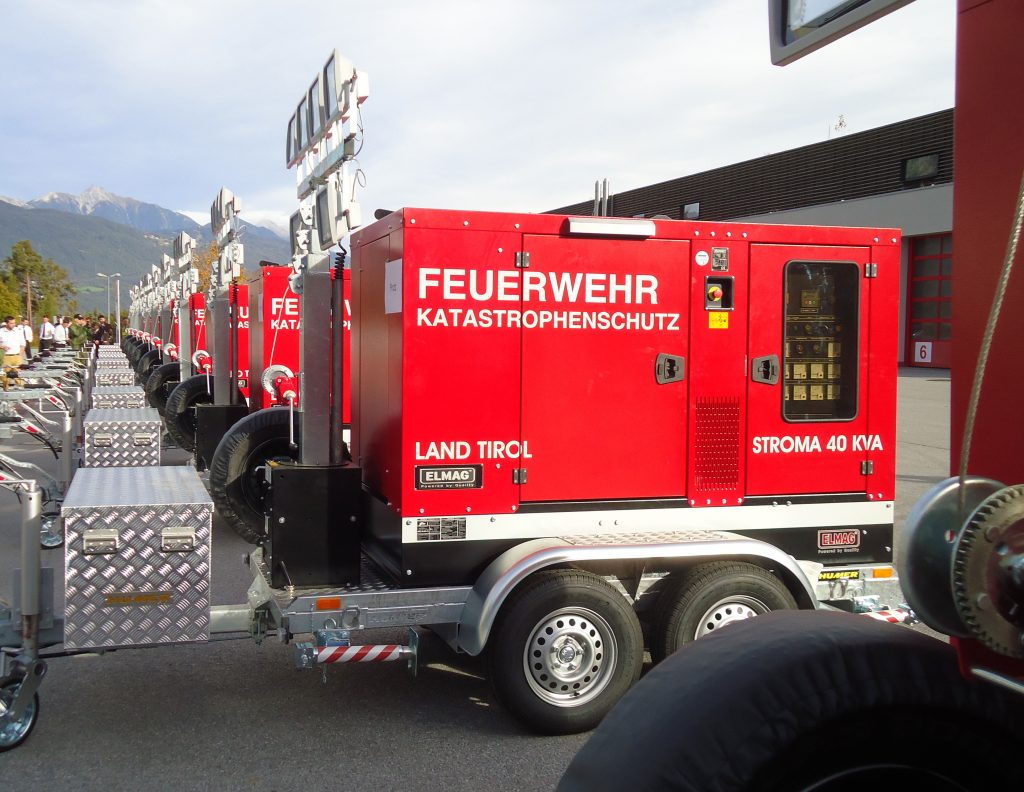 Unsere Wache verfügt zudem über einen mobilen Stromerzeuger mit einer Leistung von 40 kVA der Firma ELMAG/HUMER (Baujahr 2014). Mit diesem Aggregat können wir bei Blackout-Situationen, etwa im Zuge von Unwettern, schnell und zuverlässig eine Notstromversorgung sicherstellen.